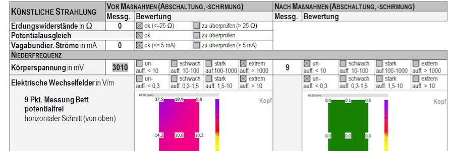 Die Einschätzung, ob die ermittelten Werte eine Gesundheitsbelastung darstellen können, erfolgt objektiv anhand des international anerkannten Standards der baubiologischen Messtechnik (SBM).